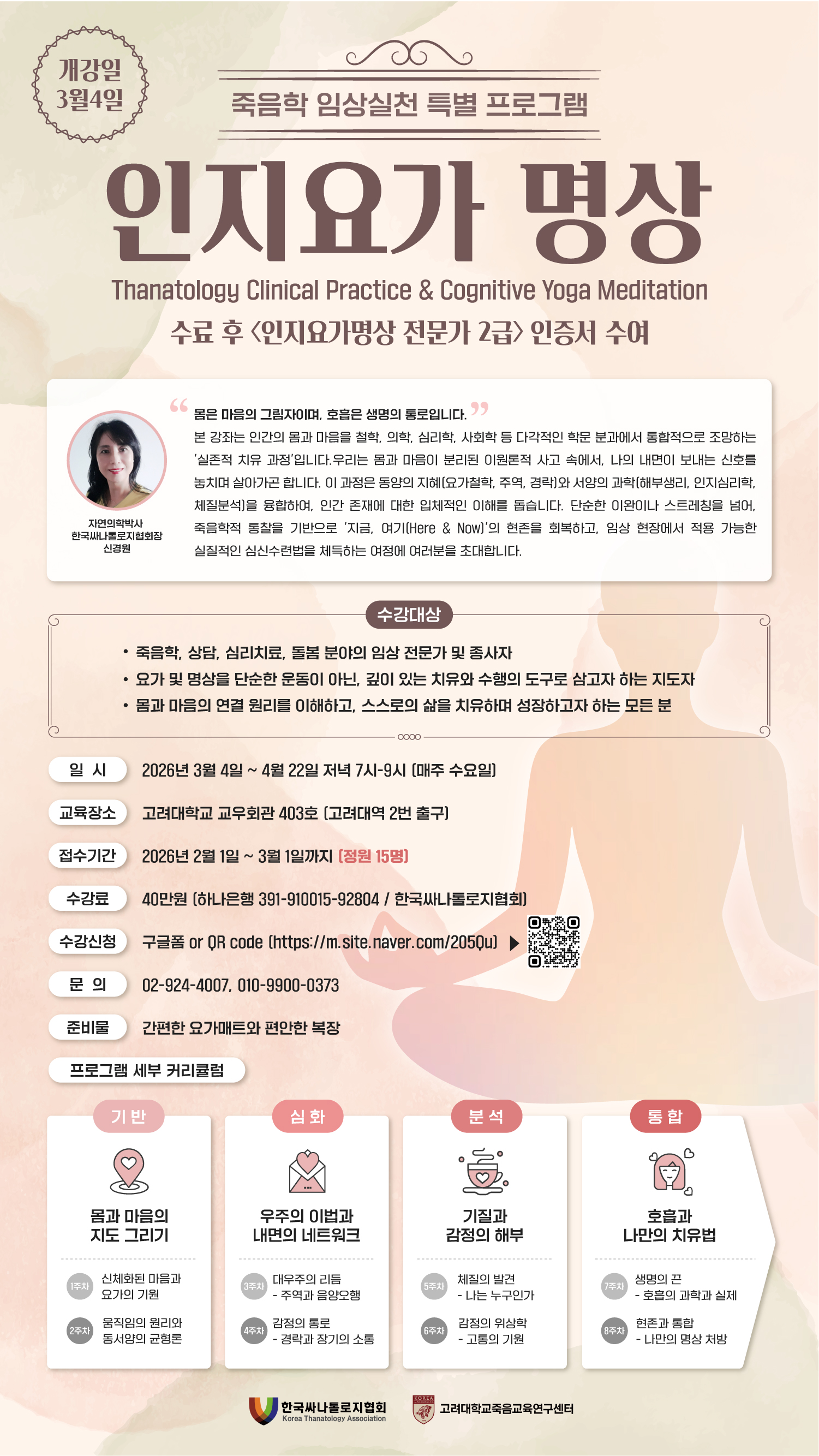 "삶과 죽음의 경계를 이해하고, 인간다움의 가치를 지켜나갈 수 있는 전문가로 성장하세요.